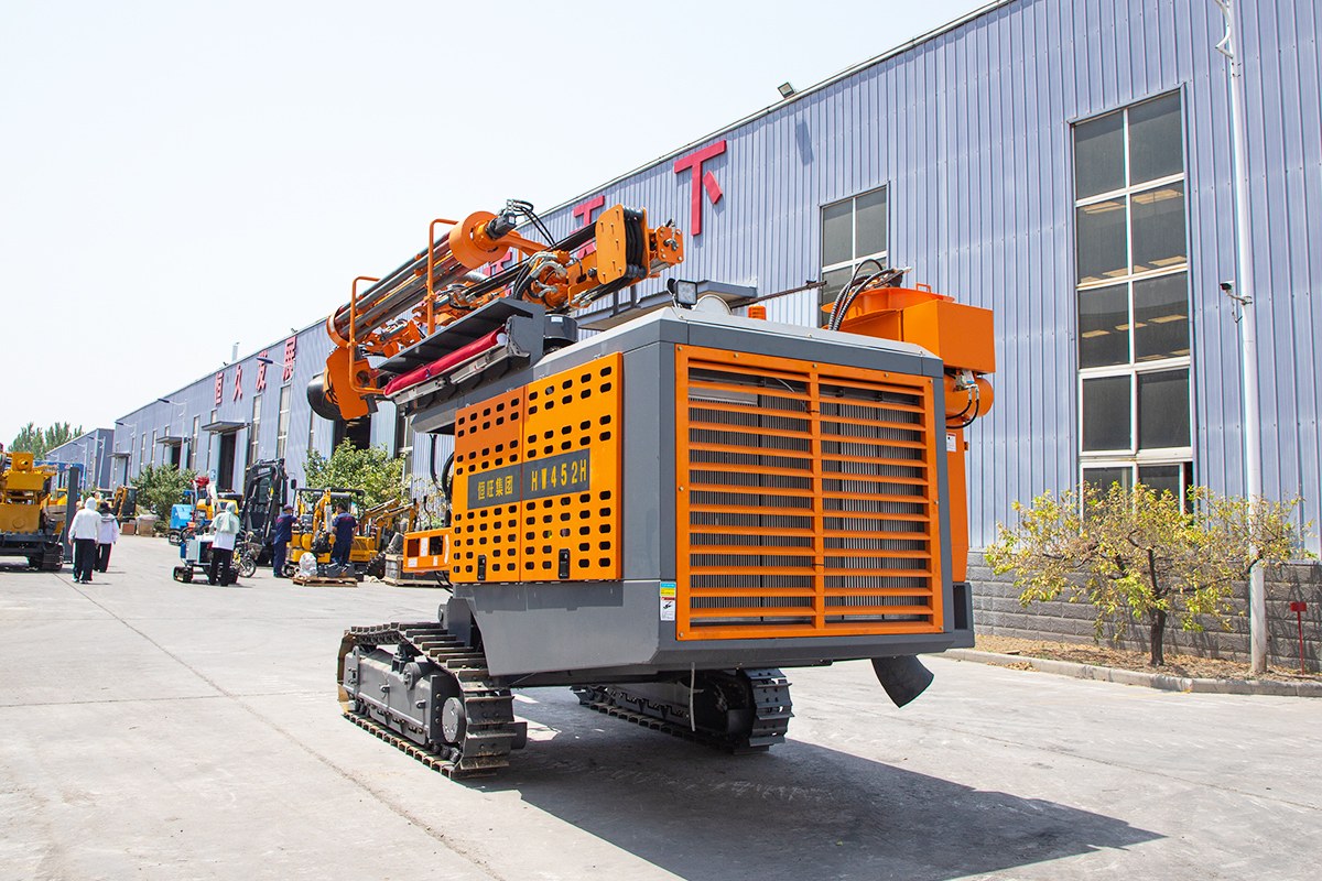 The DTH drilling rig is specifically designed for drilling blast holes in medium to hard rock, with a diameter range of 90-130 mm and a maximum depth of 24 m.