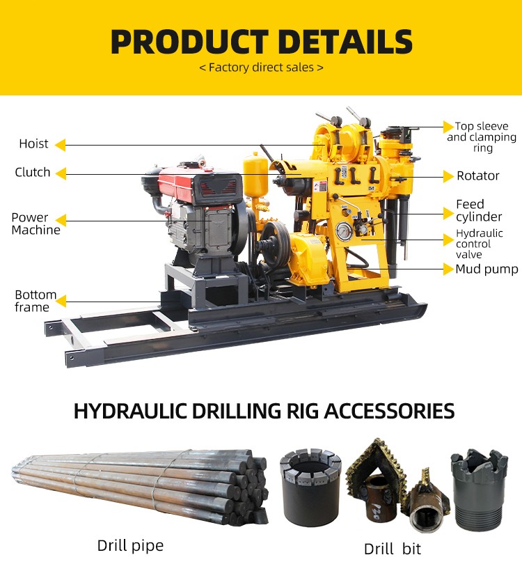 3. The drilling rig has a wide range of uses and can be used for: water wells, mineral exploration, geothermal applications, soil surveys, rock coring, etc.;